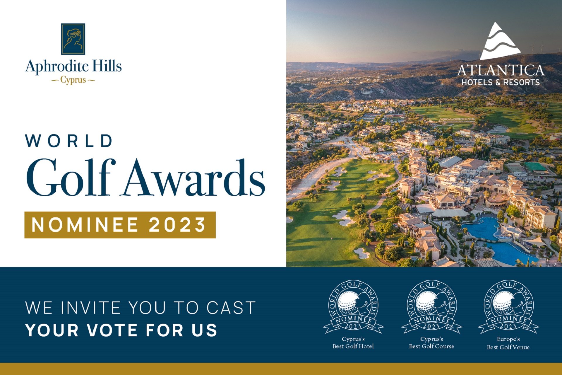 We proudly announce that Aphrodite Hills Resort has been selected as a nominee in three categories for the 10th Annual World Golf Awards 2023 – the most prestigious awards programme in the golf tourism industry.